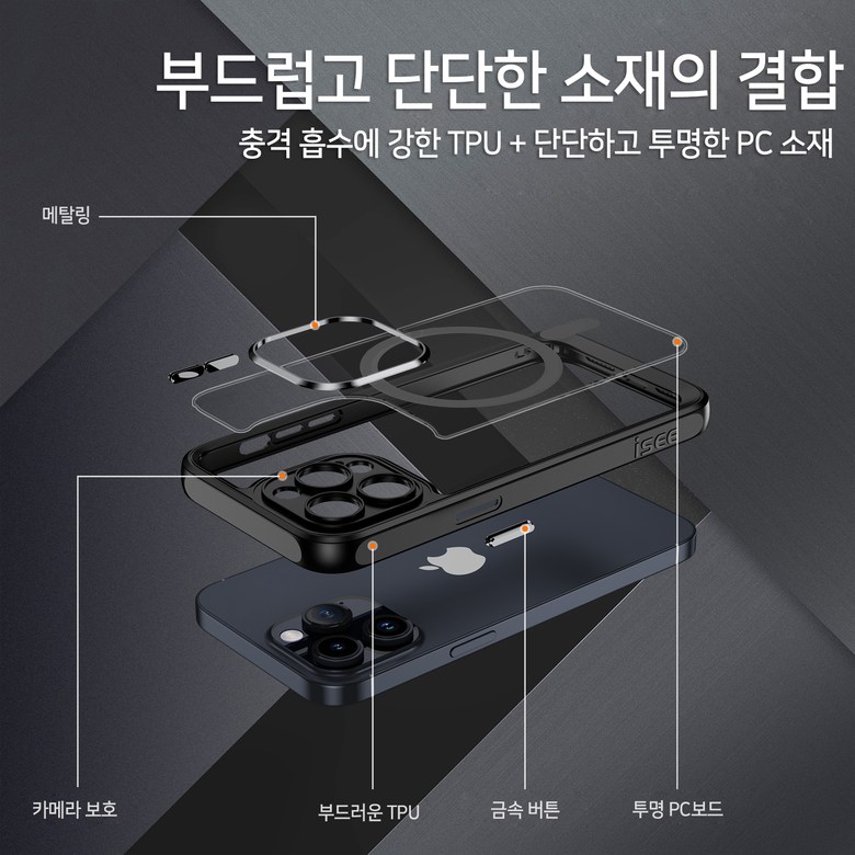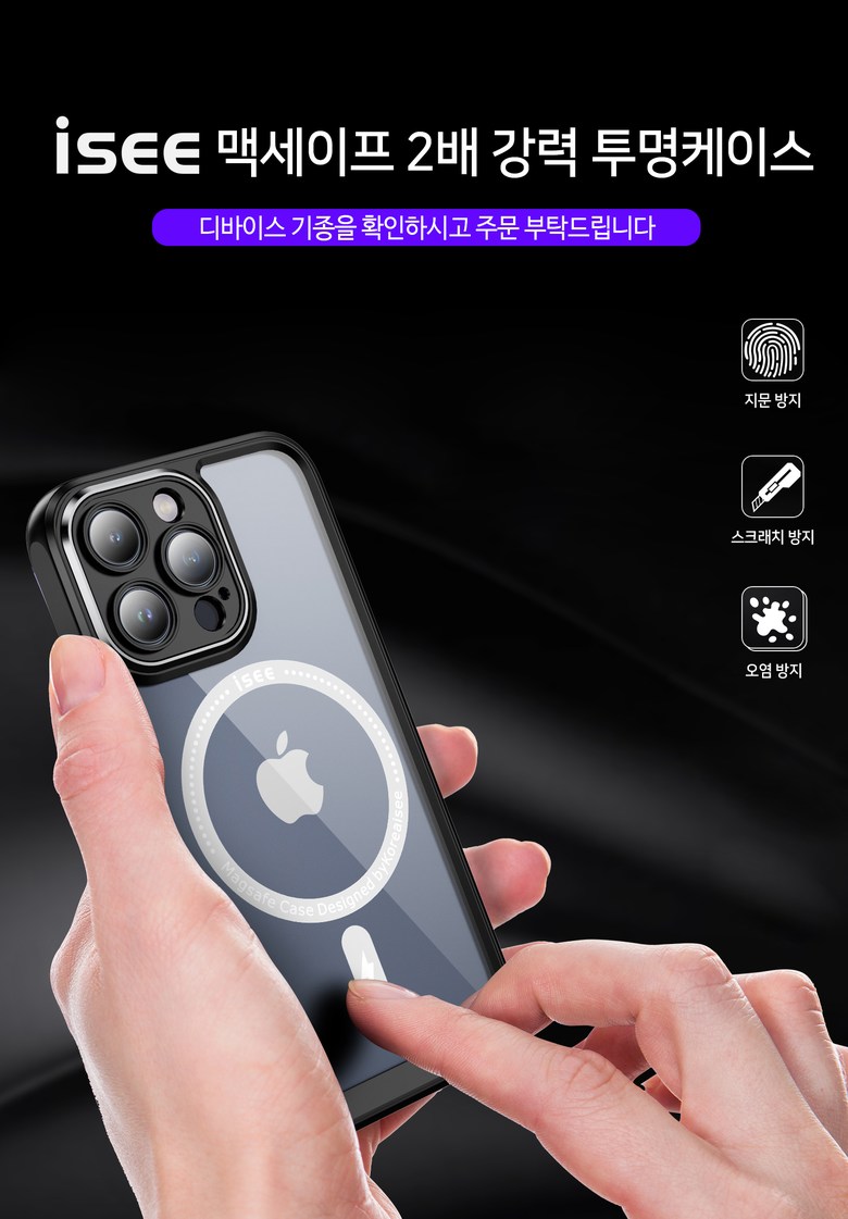 | 품명 및 모델명 | isee아이시 아이폰 2배강력 맥세이프 투명케이스 | 인증/허가 사항 | 상품 상세페이지 참조 |