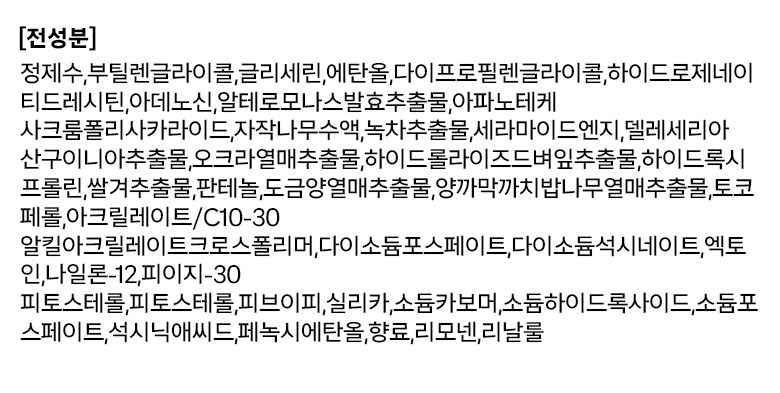 | 용량(중량) | 컨텐츠 참조 | 제품 주요 사양 | 모든 피부용 |