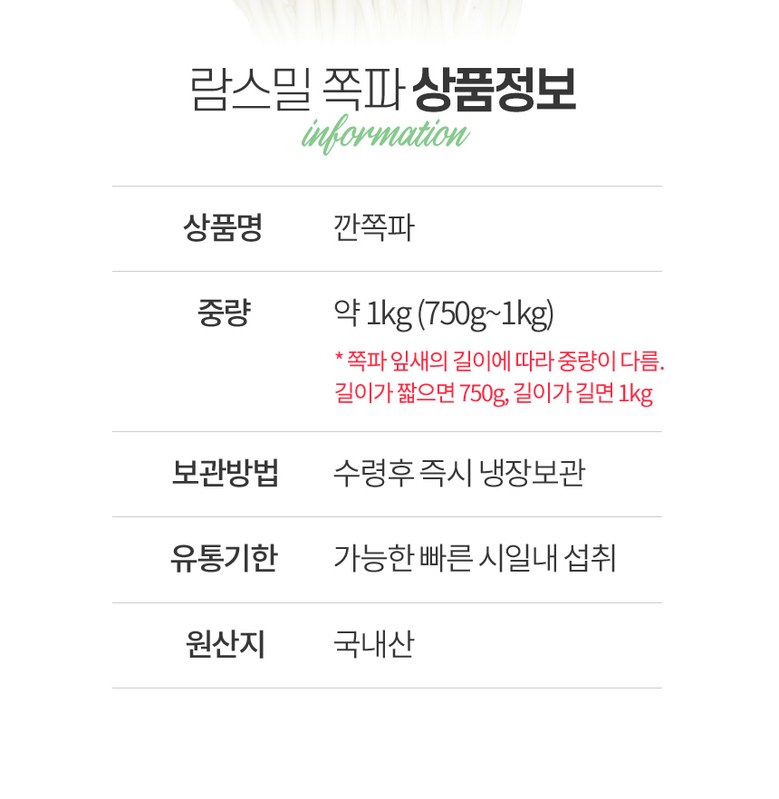 | 품목 또는 명칭 | 상품 상세페이지 참조 | 포장단위별 내용물의 용량(중량),수량,크기 | 800g~1kg |