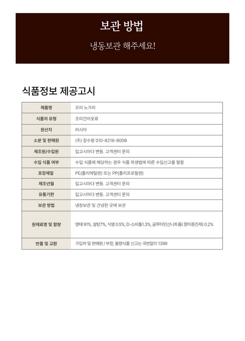 | 제품명 | 상품 상세페이지 참조 | 식품의 유형 | 조미건어포류 |