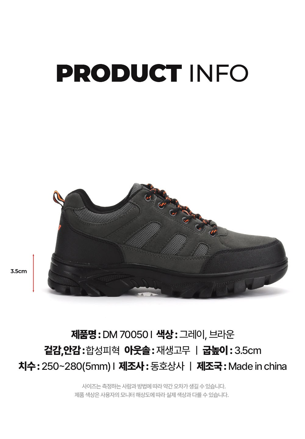 | 제조국 | 중국 | 취급시 주의사항 | 가급적 물세탁은 피해주시고, 장시간 직사광선에 노출 시 신발의 변형이 있을 수 있습니다. |