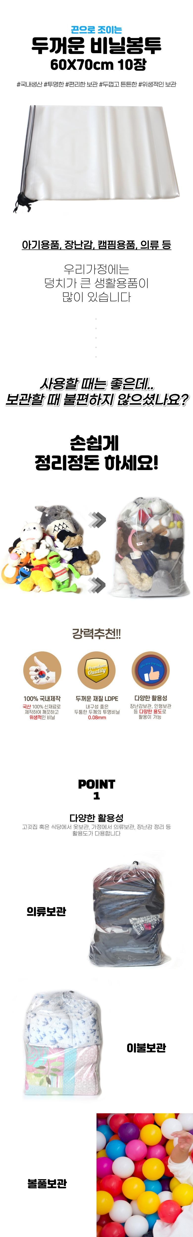 | 품명 및 모델명 | 끈조임 투명 두꺼운 비닐봉투 60X70cm 10장 | 인증/허가 사항 | 해당사항없음 |