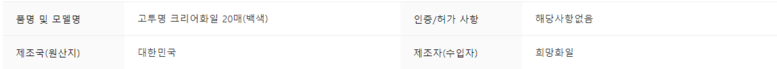 | 품명 및 모델명 | 상품 상세페이지 참조 | 인증/허가 사항 | 상품 상세페이지 참조 |