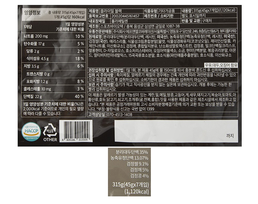 | 제품명 | 플라이밀 블랙 | 식품의 유형 | 컨텐츠참조 |