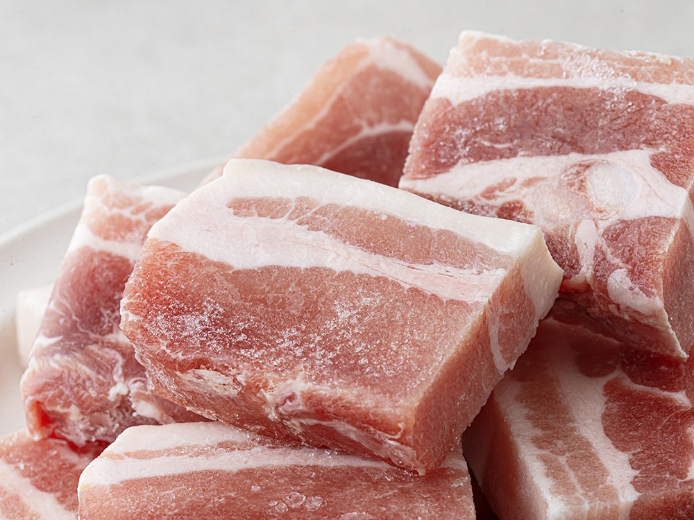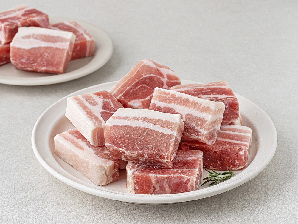 지방과 살코기가 한 겹 한 겹 쌓여 조화롭게 어울리는 삼겹살이에요. 두툼하게 손질한 덕분에 육즙을 가득 머금고 있지요. 노릇하게 구워 먹어보면 쫄깃한 식감과 함께 씹을수록 고소한 감칠맛을 한껏 음미할 수 있답니다. 삼겹살 요리로 식탁 위를 풍성하게 채워보세요.