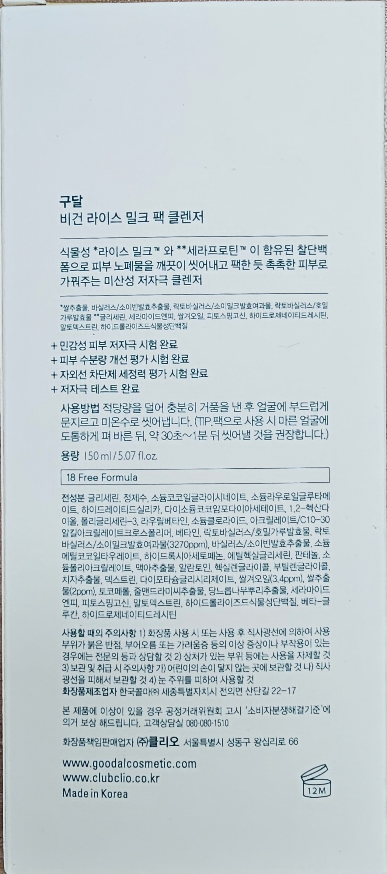 | 화장품제조업자, 화장품책임판매업자 및 맞춤형화장품판매업자 | 컨텐츠 참조 | 제조국 | 대한민국 |