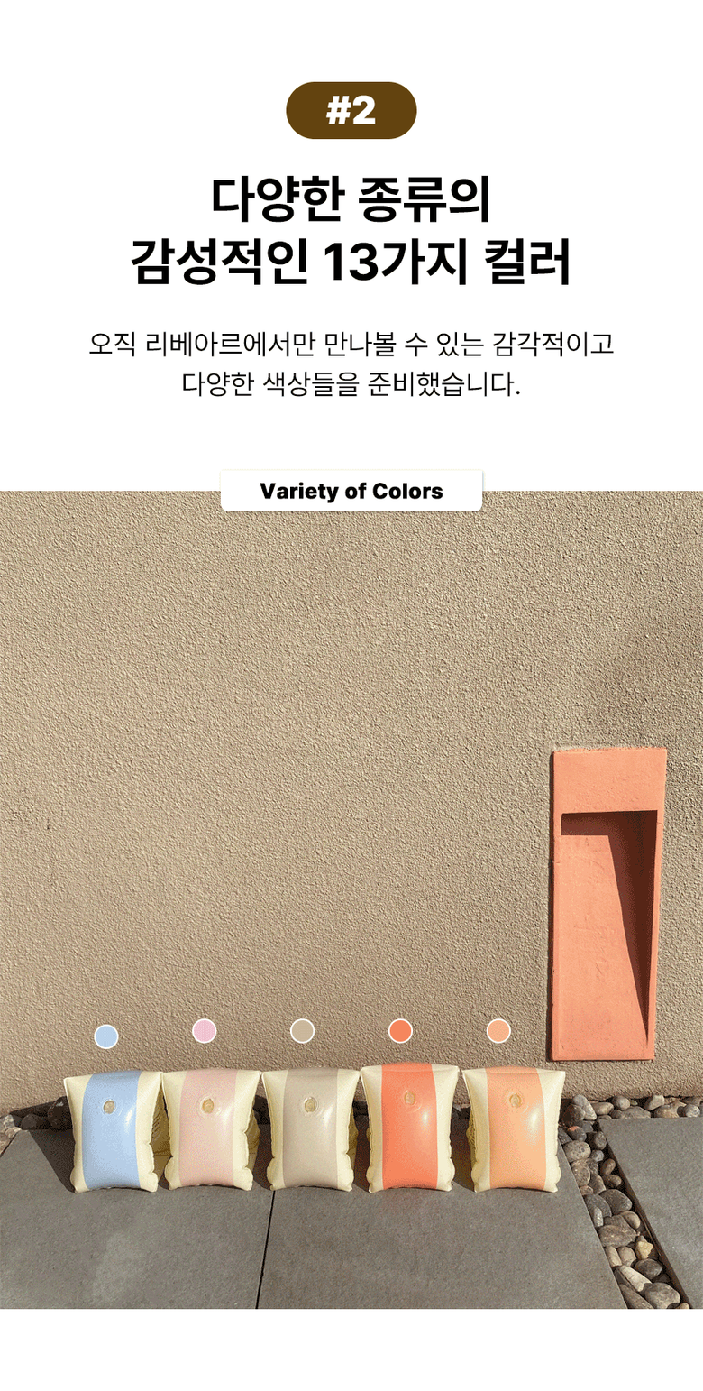 | 크기, 중량 | 약 27x17cm(공기 주입 전) | 색상 | 스카이블루, 사파이어 딥블루, 라이트핑크, 라벤더 퍼플, 애프리콧, 코랄피치, 브라이트 옐로우,엘레펀트 그레이, 딥그린, 페퍼민트, 올리브그린, 헤이즐넛 브라운, 피넛아몬드 |