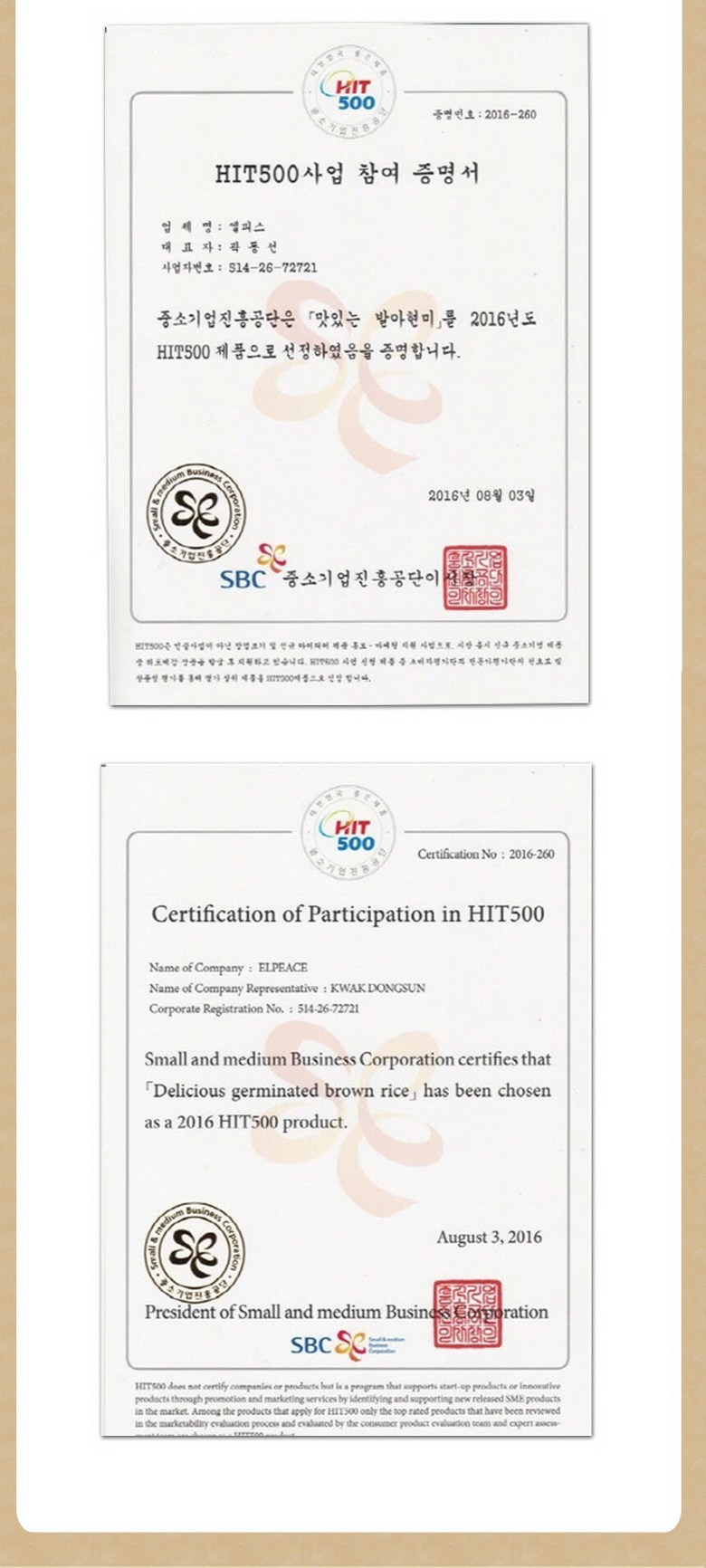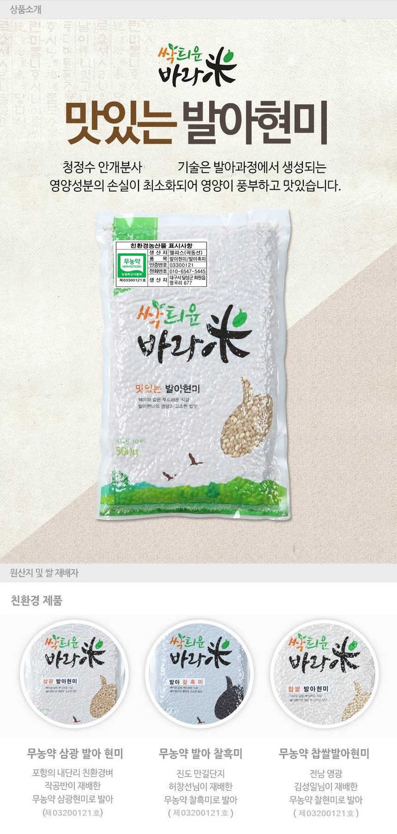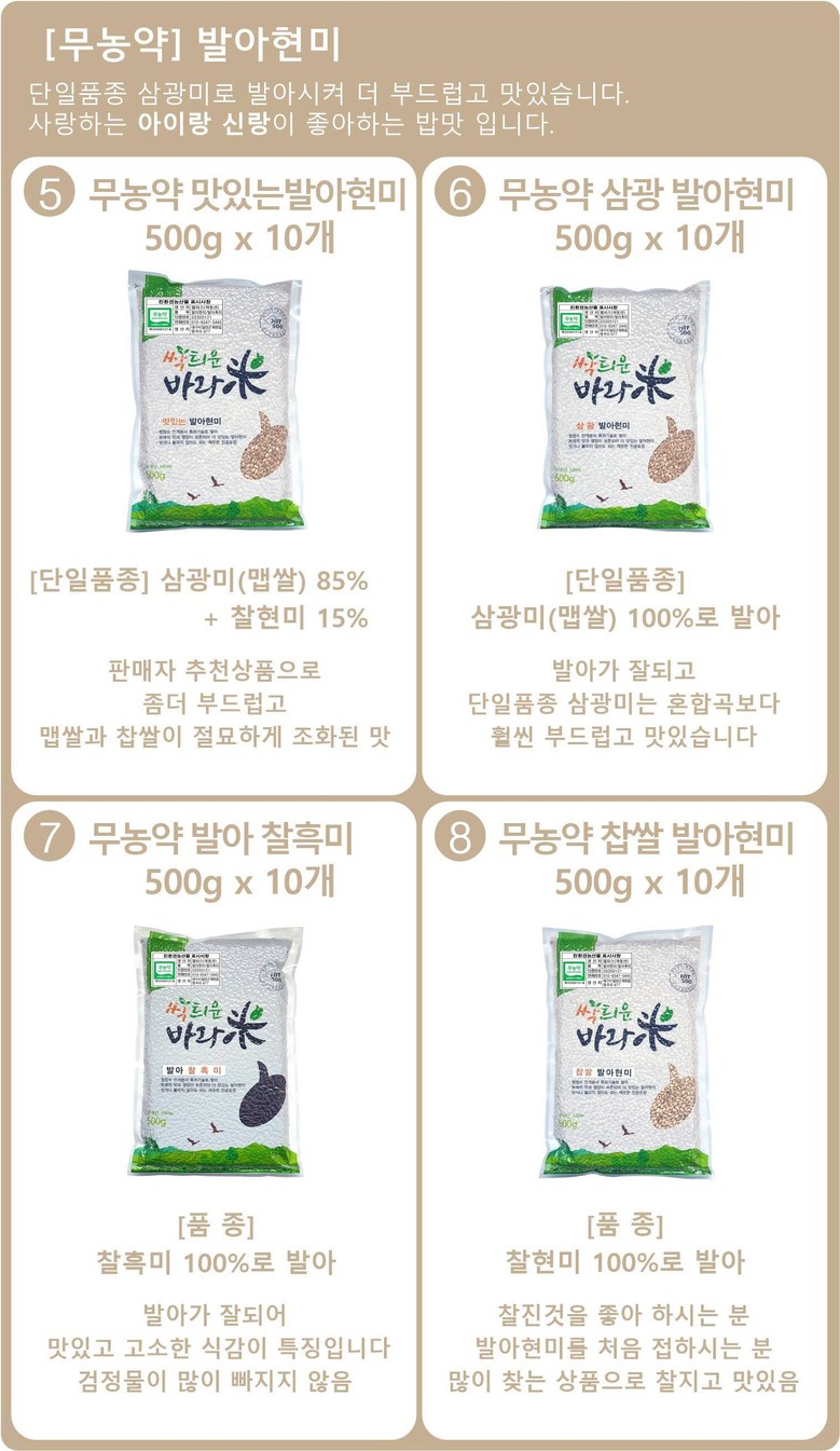 | 품목 또는 명칭 | 발아현미 | 포장단위별 내용물의 용량(중량),수량,크기 | 500gX10개 |