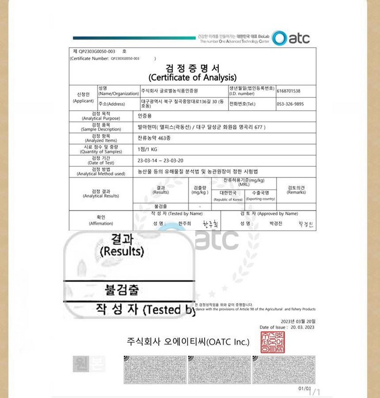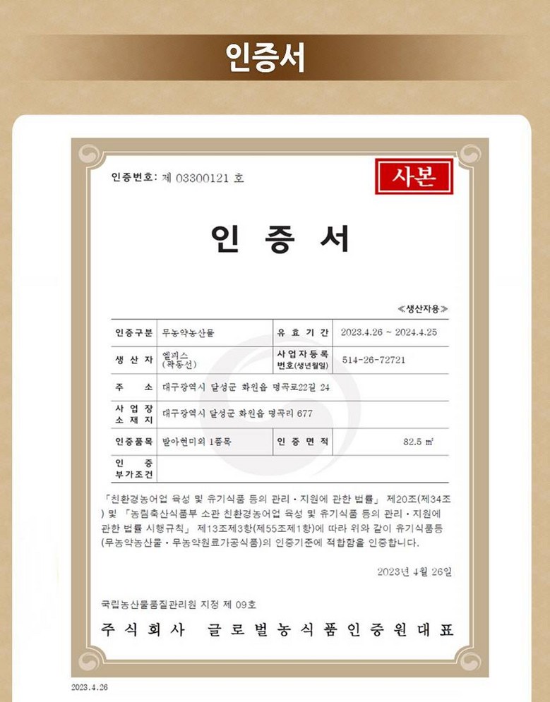 | 제조연월일, 소비기한 또는 품질유지기한 | 생산년도:2025년 유통기한 : 제조일자로부터 10개월 | 세부 품목군별 표시사항 | <농산물>1) 유전자 변형농산물 표시 -해당없음2) 지리적표시 -<수산물> 1) 유전자 변형수산물 표시 -2) 지리적표시 -<축산물>1) 등급 표시 -2) 이력관리 표시 유무 - |