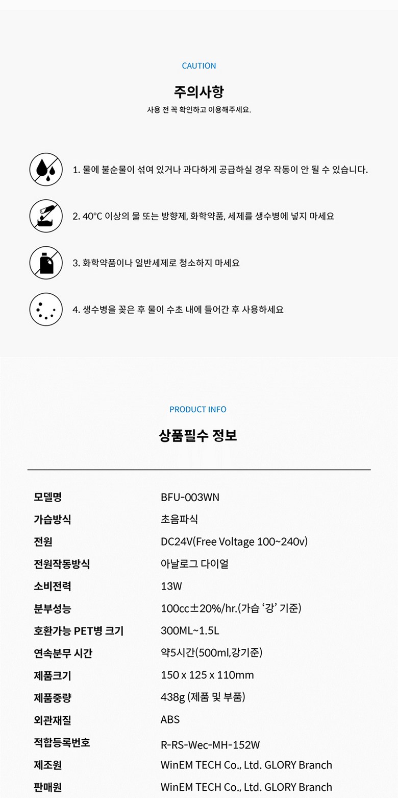 | 출시년월 | 상세페이지 참조 | 제조자(수입자) | 윈이엠텍 |