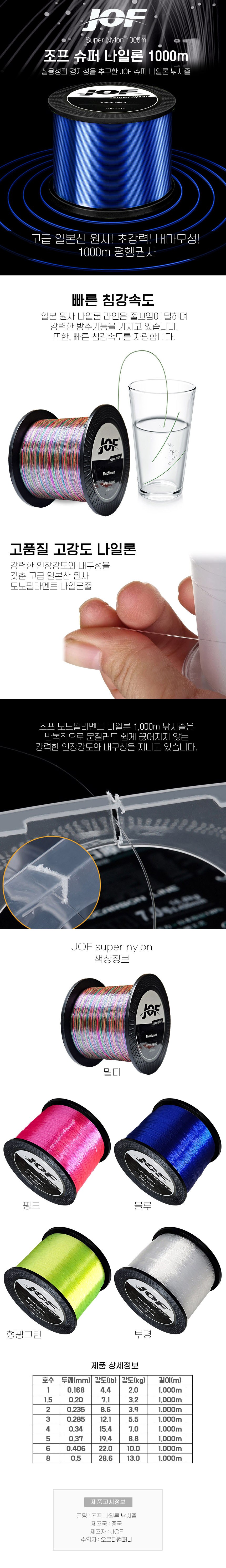 | 품명 및 모델명 | JOF 조프 나일론 낚싯줄 1000m 라인 대용량원줄 6호 형광그린 | KC 인증정보 | 해당없음 |