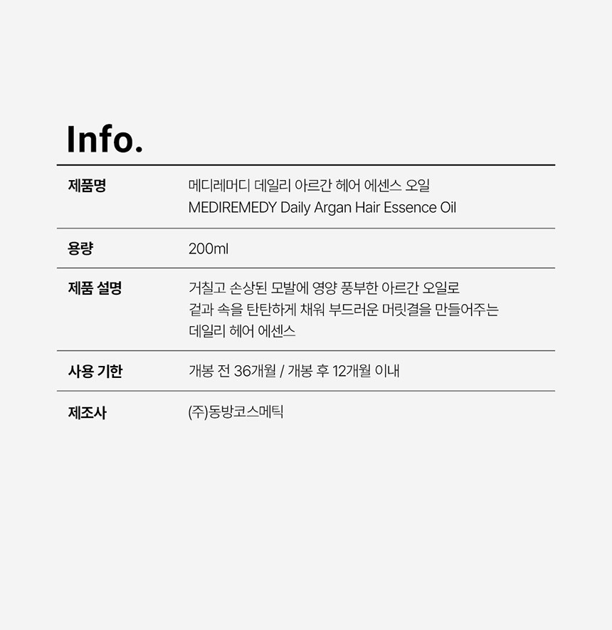 | 용량(중량) | 200ml | 제품 주요 사양 | 모든 모발용 |