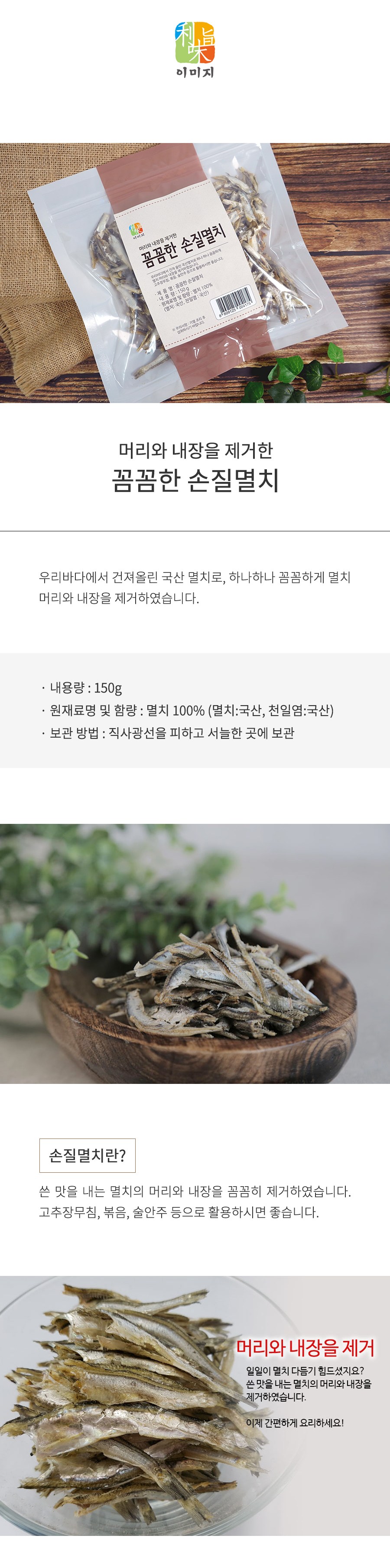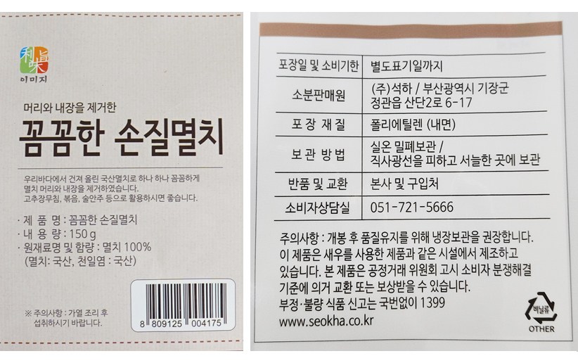 | 품목 또는 명칭 | 꼼꼼한 손질 멸치 | 포장단위별 내용물의 용량(중량),수량,크기 | 150g |