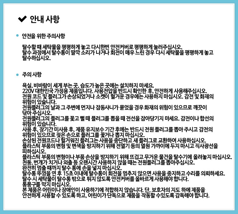 | 품명 및 모델명 | 대우 전기탈수기 / DEW-SP500 | KC 인증정보 | HU071457-18005E, R-REM-hET-DWW-M698WS |