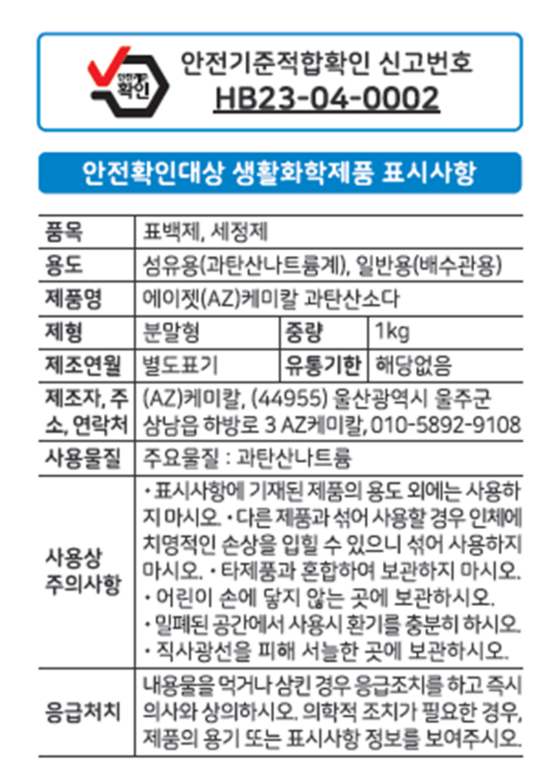 상호/대표자 | AZ케미칼 / 김건우 | 사업장 소재지 | 울산광역시 울주군 삼남읍 하방로 3 AZ케미칼 |