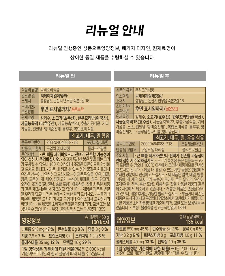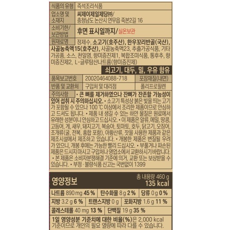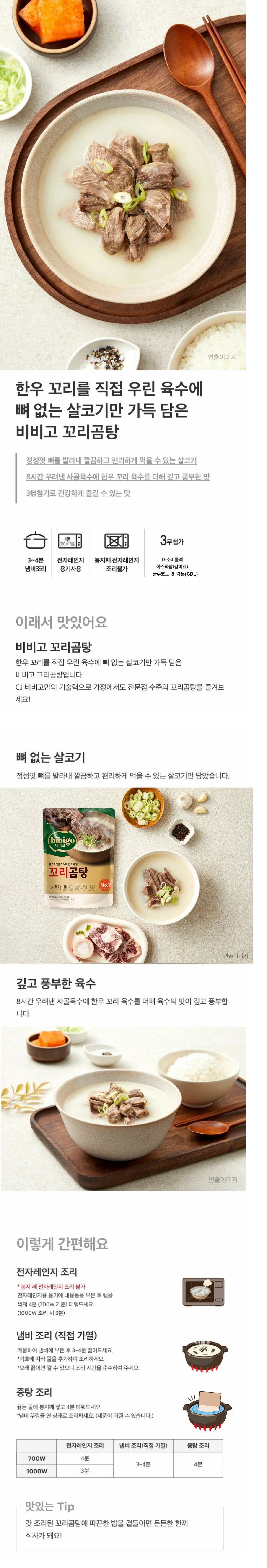 | 제품명 | bibigo 비비고 꼬리곰탕 | 식품의 유형 | 컨텐츠 참조 |