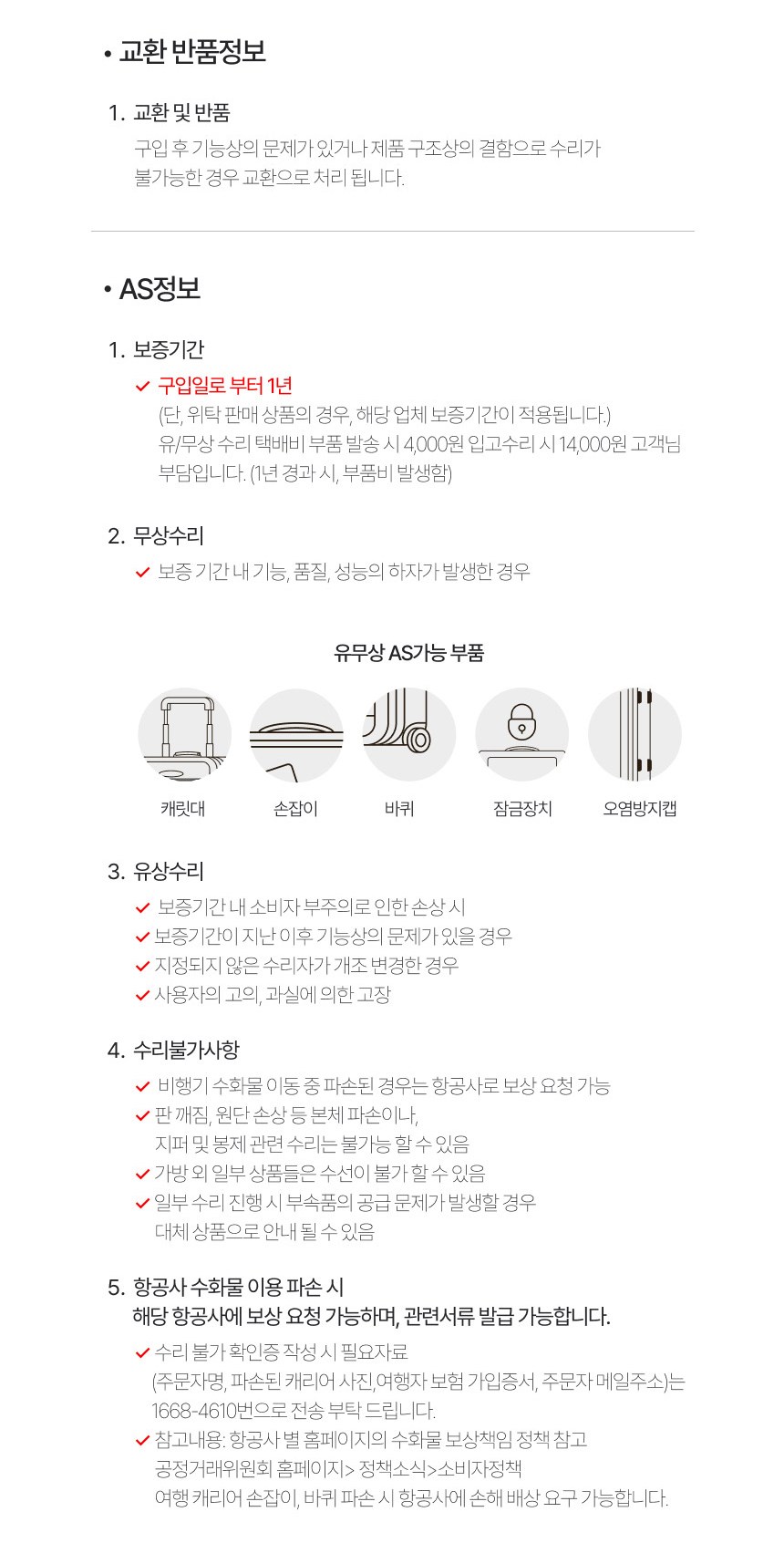 - ㆍ교환/반품에 관한 일반적인 사항은 판매자가 제시사항보다 관계법령이 우선합니다.