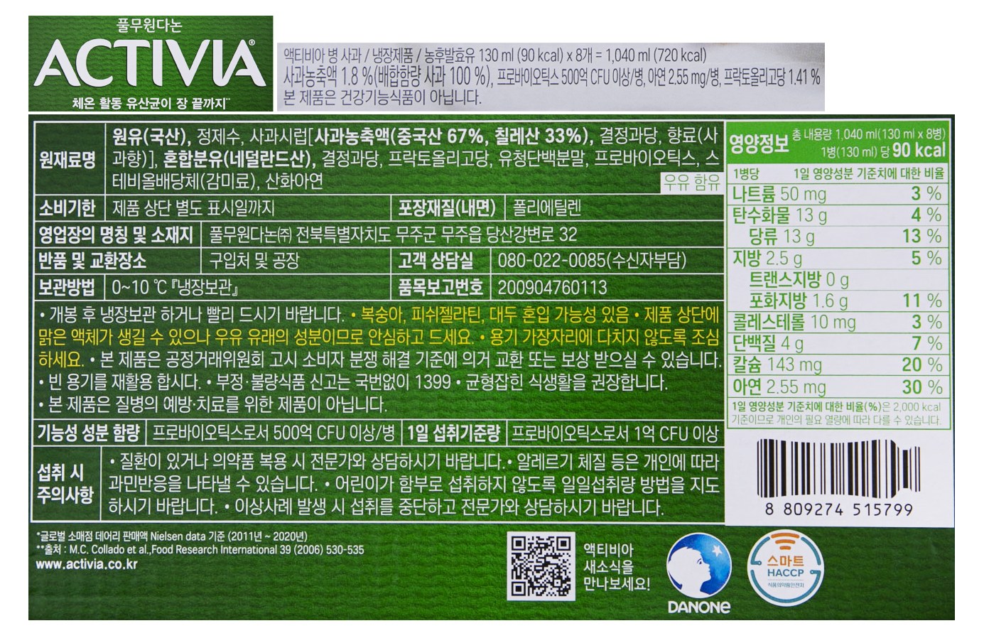 | 제품명 | 액티비아 병 사과 | 식품의 유형 | 컨텐츠 참조 |