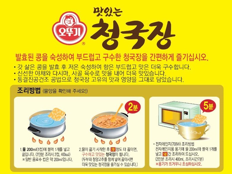 | 제품명 | 오뚜기 맛있는 청국장 | 식품의 유형 | 즉석조리식품 |