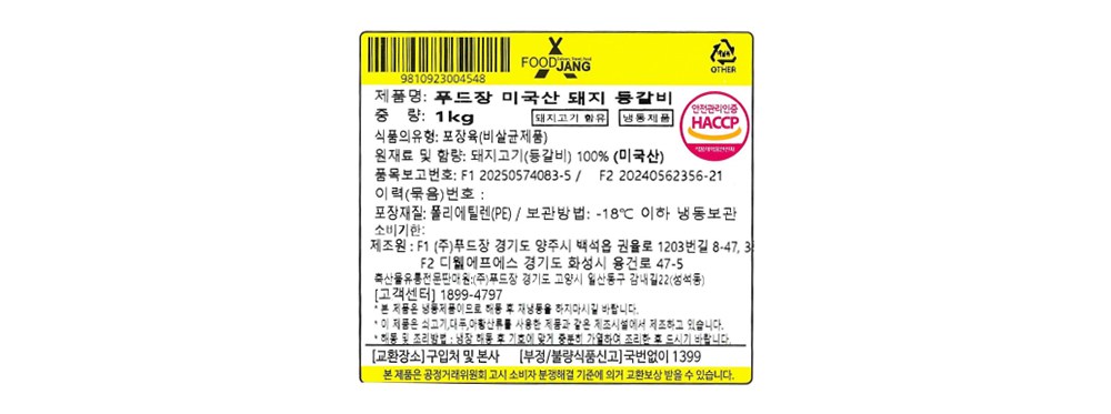| 제조연월일, 소비기한 또는 품질유지기한 | 소비기한(또는 유통기한) : 2027년 02월 01일 이거나 그 이후인 상품 제조년월일 : 2026년 02월 02일 이후인 제조상품 | 세부 품목군별 표시사항 | 축산물 등급표시 : 해당 없음 / 이력번호 표시유무 : 이력번호 표시제품임 |