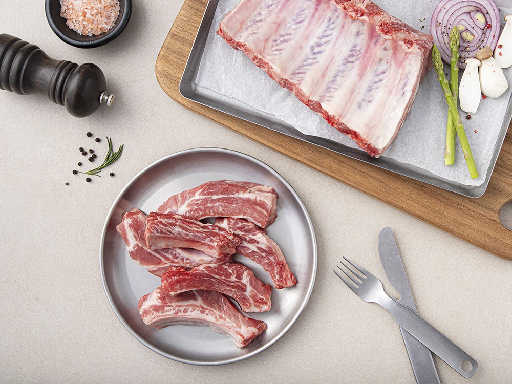 요리로 활용했을 때 근사한 비주얼을 자랑하는 돼지고기 등갈비예요. 탄력 있는 육질이 선사하는 쫄깃한 식감과 고소한 육즙이 일품이지요. 특별한 날, 맛있는 양념과 함께 조리해 식탁 위를 화려하게 꾸며주는 등갈비 요리를 완성해보세요.