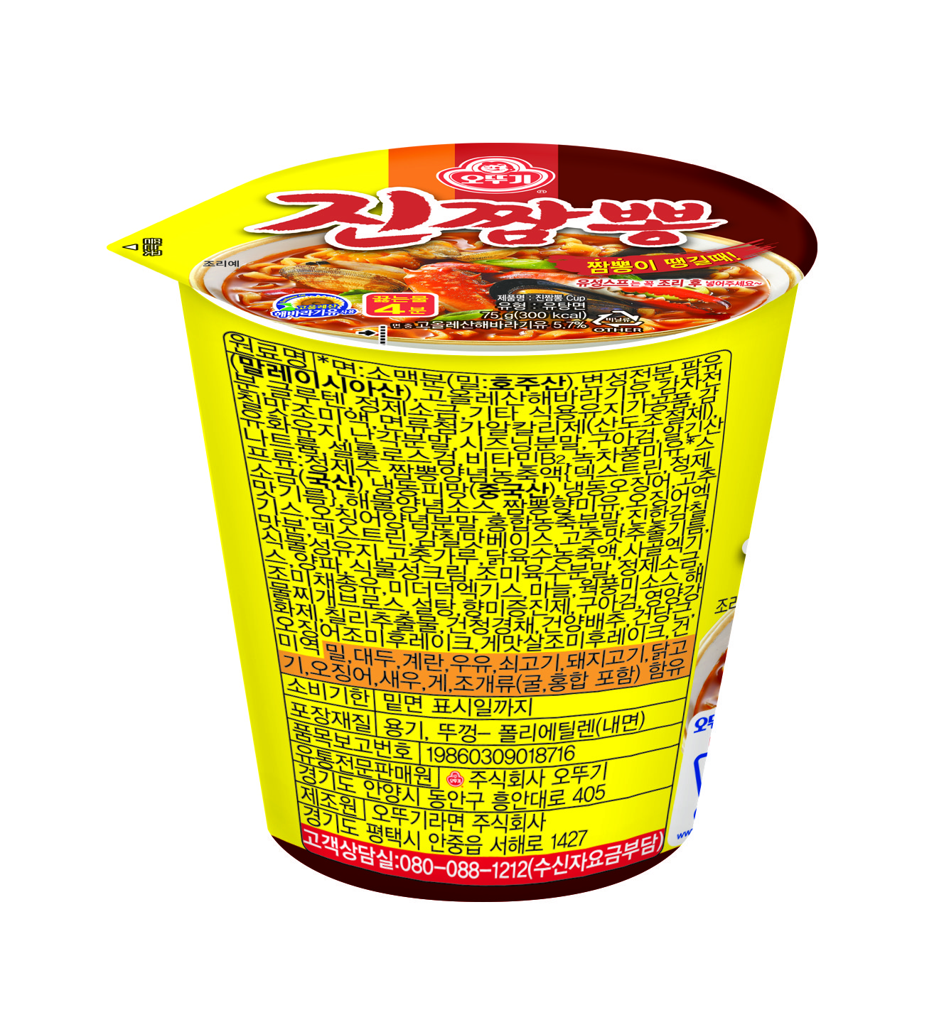 | 제품명 | 오뚜기 진짬뽕 작은컵 | 식품의 유형 | 유탕면류 |