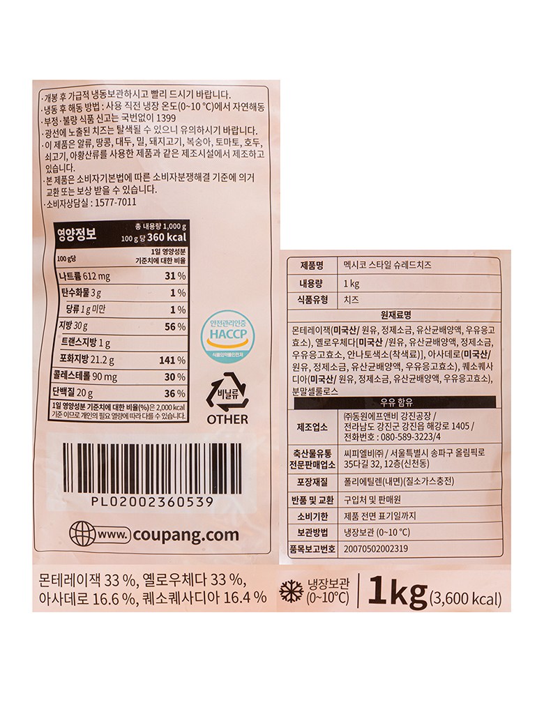 - 치즈 형태: 채/슈레드