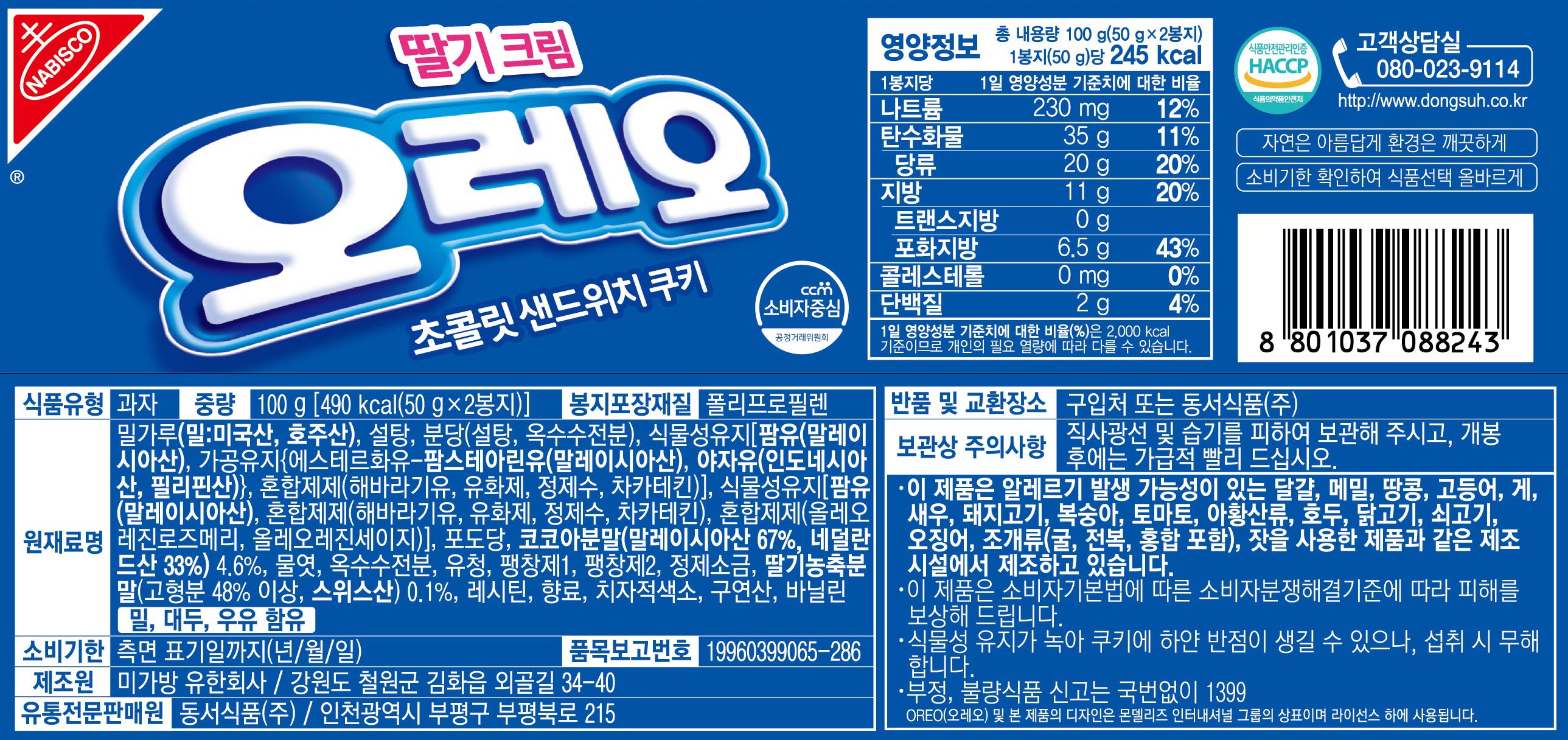 | 제품명 | 초콜릿 샌드위치 쿠키 딸기크림 | 식품의 유형 | 컨텐츠 참조 |