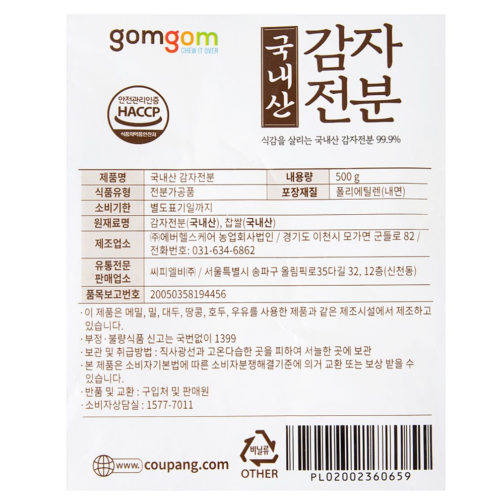 | 제품명 | 국내산 감자 전분 | 식품의 유형 | 전분가공품 |