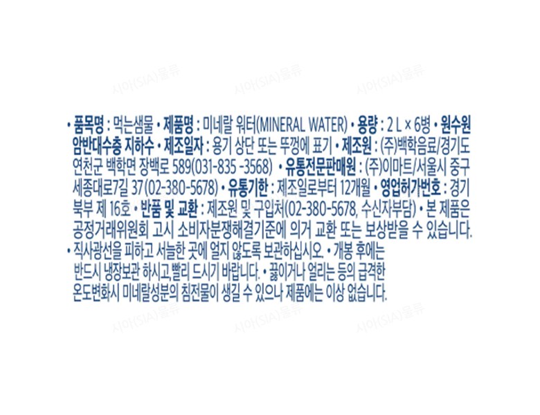 | 제품명 | 미네랄워터 | 식품의 유형 | 상품 상세페이지 참조 |