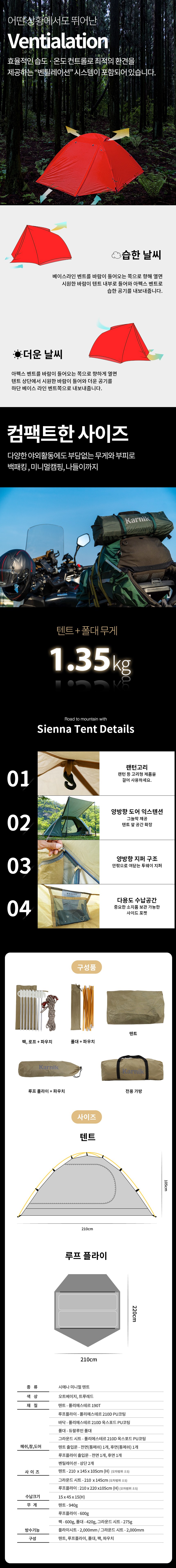 | 품명 및 모델명 | 카르닉 시에나 백패킹 텐트 + 루프 플라이 세트 | KC 인증정보 | 해당없음 |