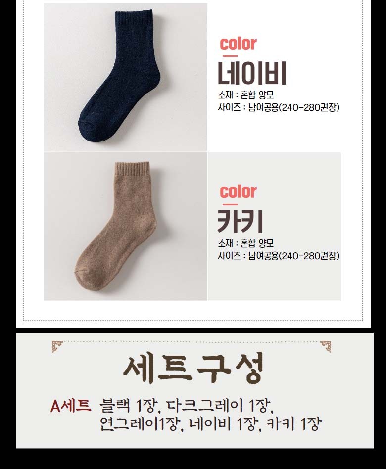 | 종류 | 상품 상세페이지 참조 | 소재 | 소재 : 혼합 양모 |