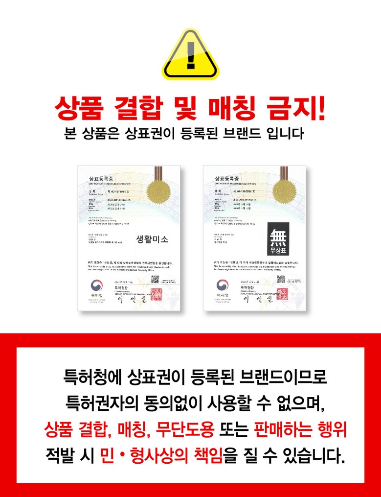 판매 부적격 상품 또는 허위과장광고 및 지식재산권을 침해하는 상품의 경우 신고하여 주시기 바랍니다.