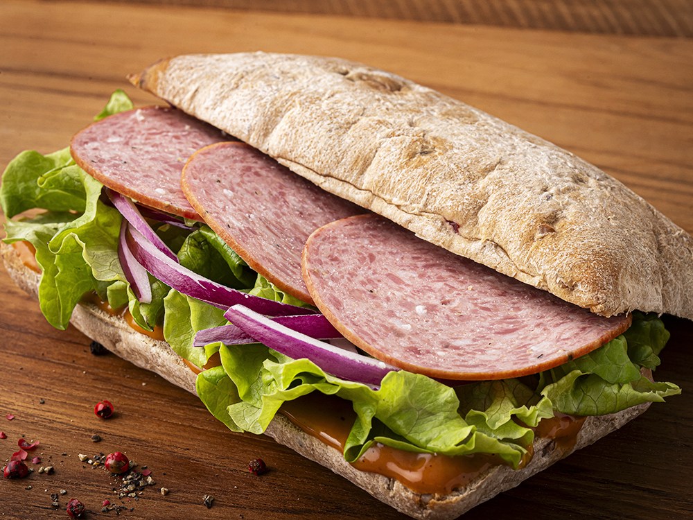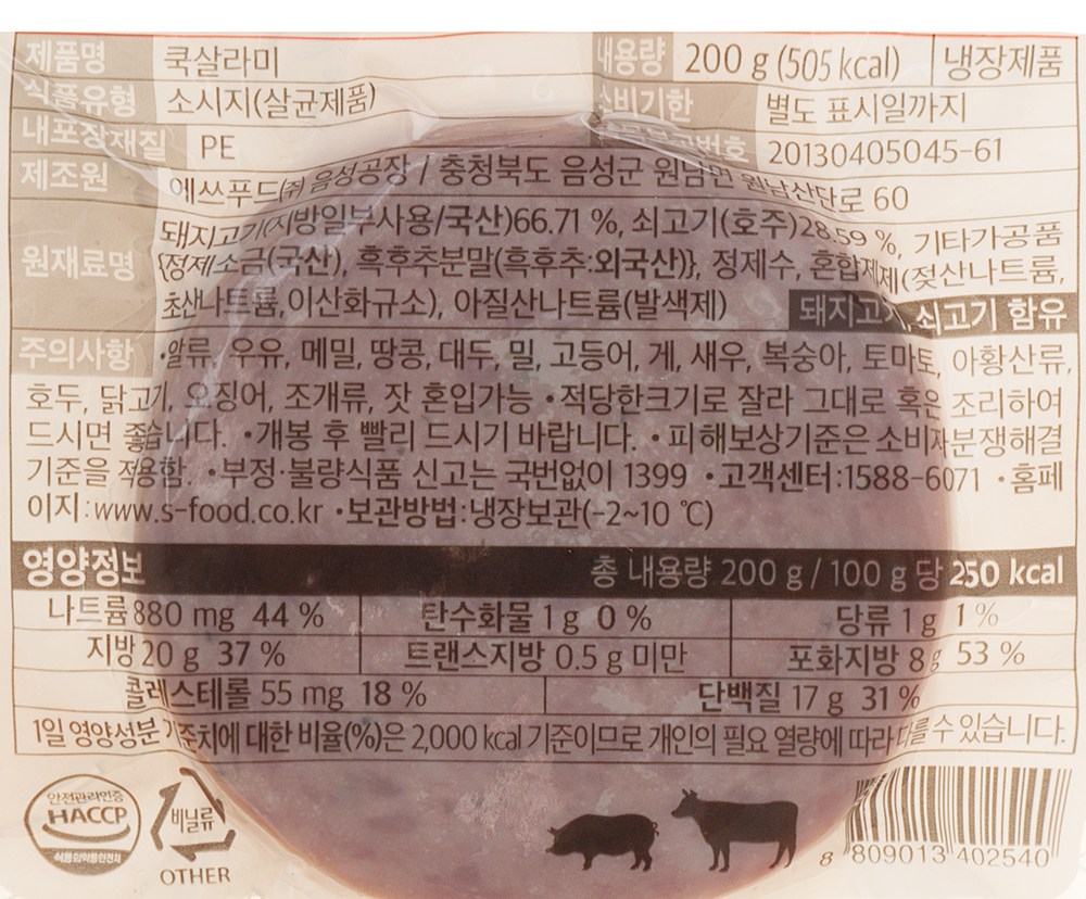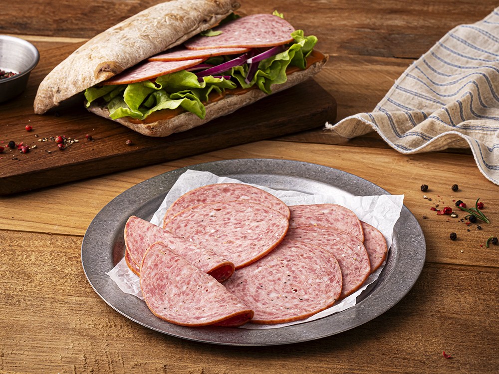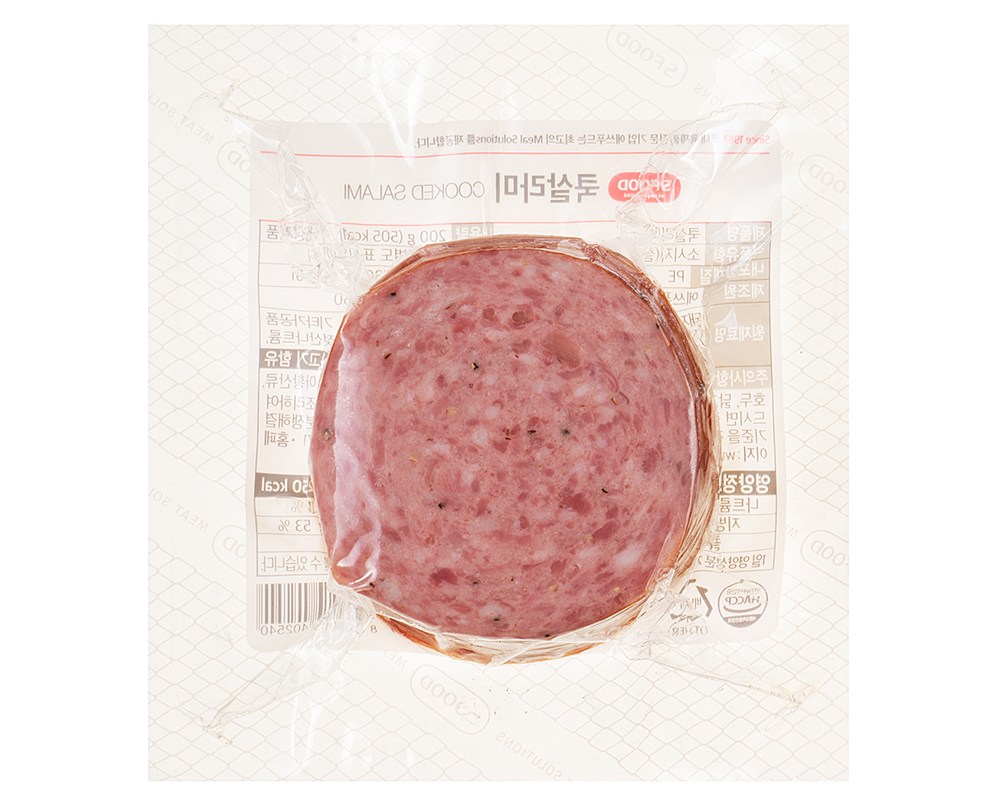 얇게 슬라이스되어 손쉽게 활용하는 쿡 살라미예요. 두 가지의 고기를 함께 사용해 더욱 다채로운 식감으로 즐길 수 있지요. 흑후추 분말로 더한 알싸한 풍미가 매력을 더해준답니다. 피자나 샌드위치에 활용하면 맛은 물론, 식감까지 풍성하게 완성할 수 있을 거예요.