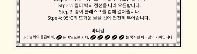 상단부의 슬릿을 오른쪽에서부터 뜯어 점선을 따라 필터백을 엽니다. 종이로 된 거는 부분을 컵에 걸고 95℃ 이상의 뜨거운 물을 천천히 붓습니다.