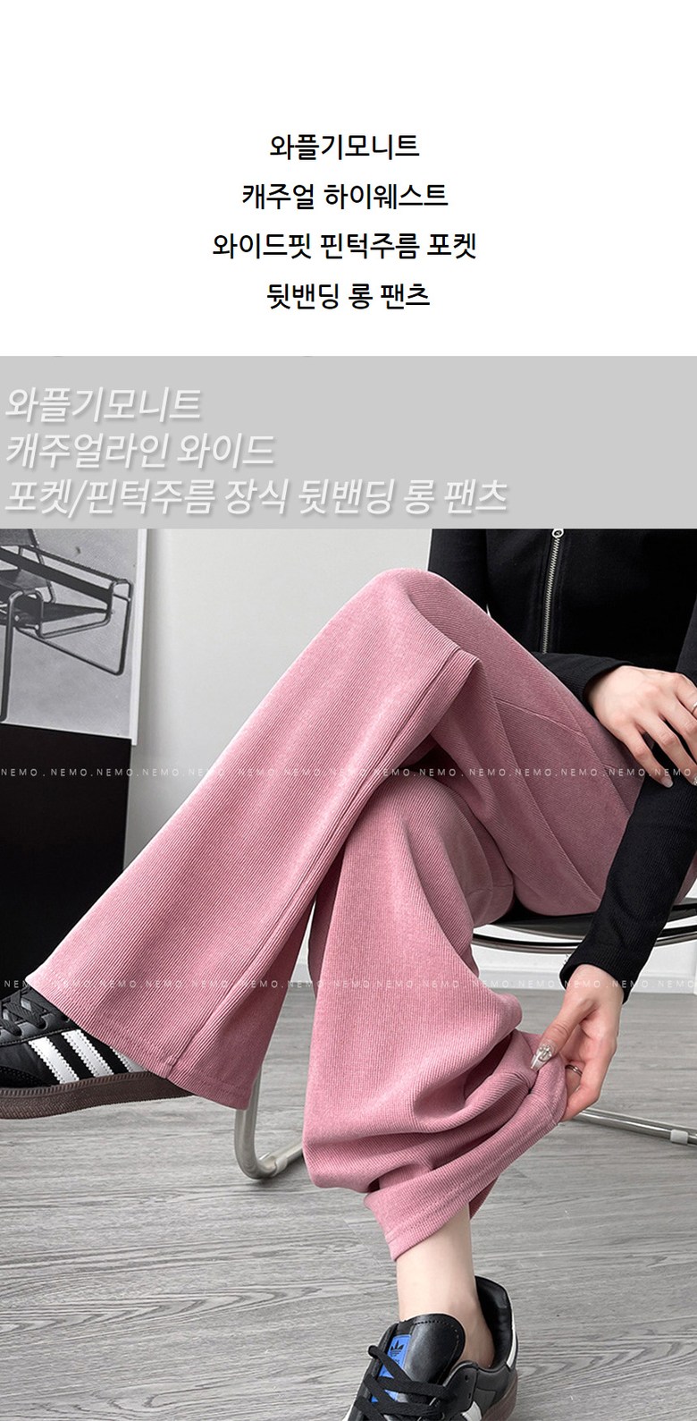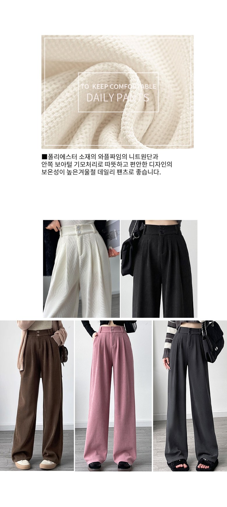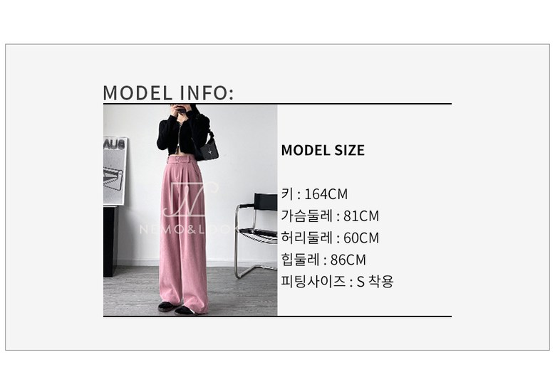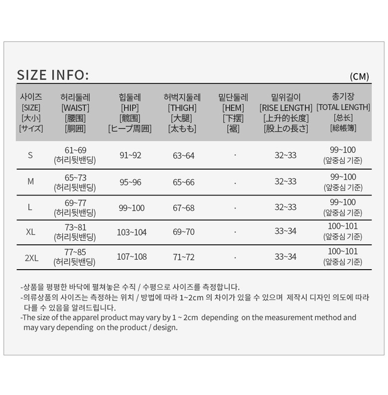 - 하의류 길이: 발목 아래 길이(롱바지 길이)