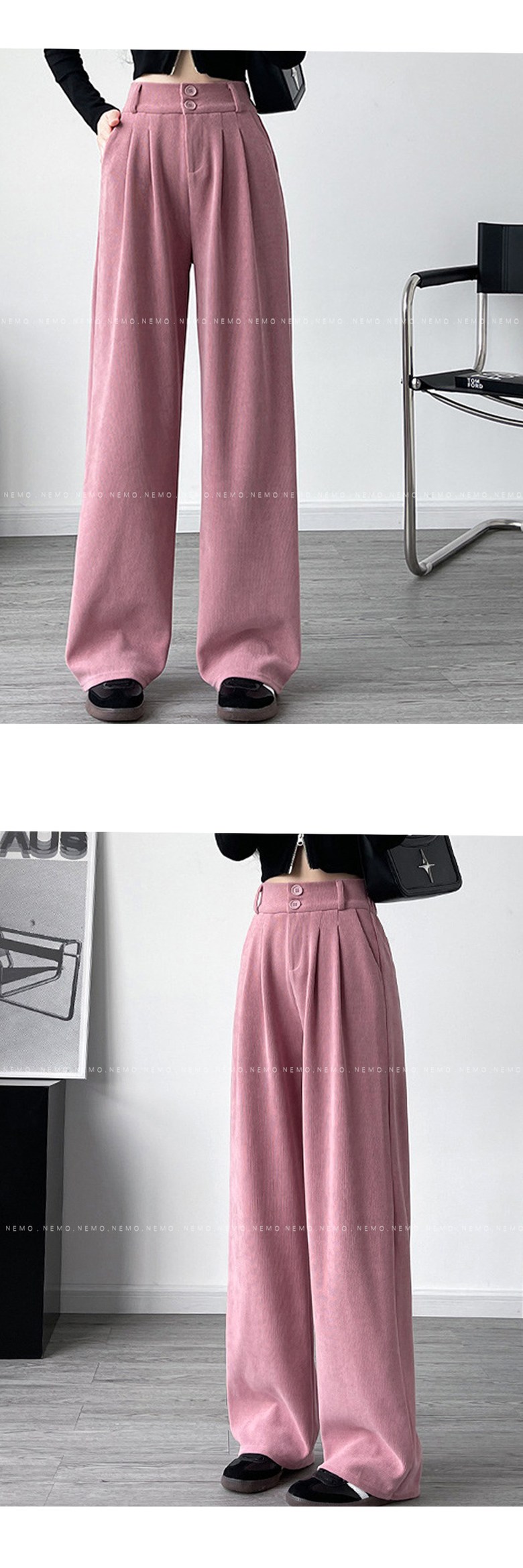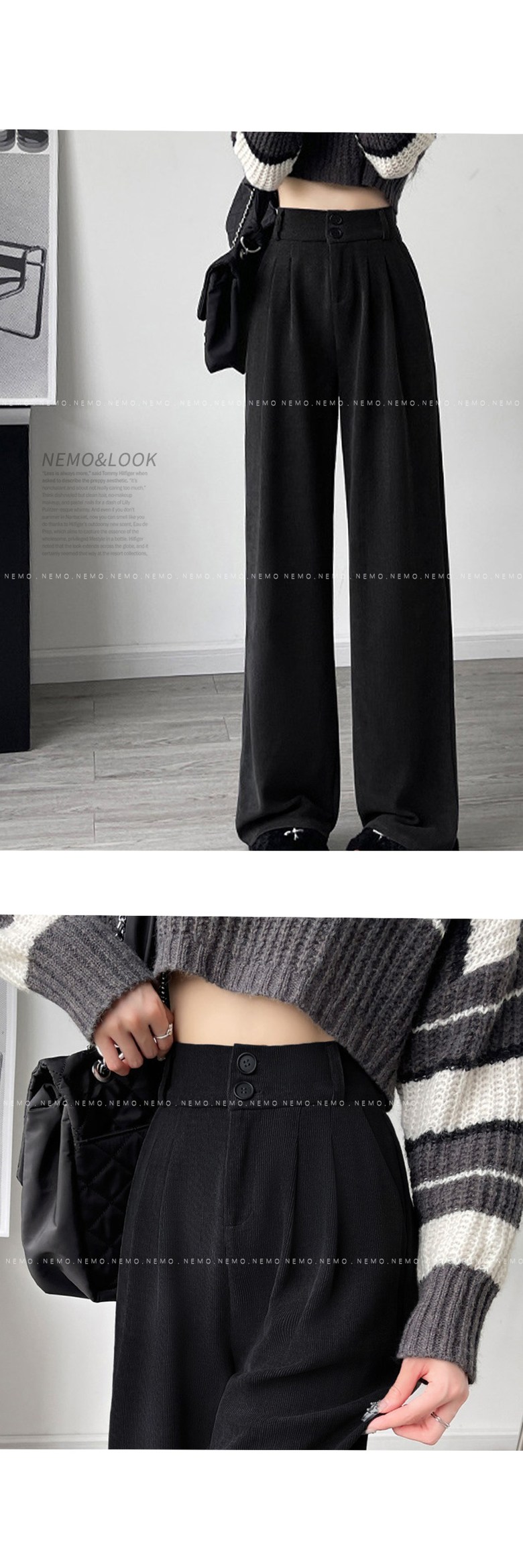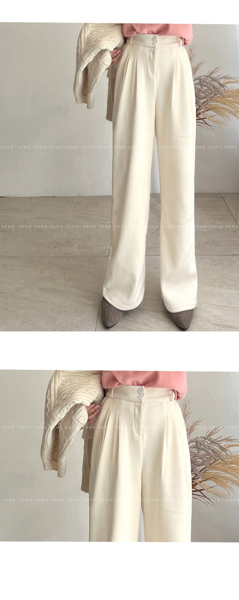 - 하의류 길이: 발목 아래 길이(롱바지 길이)