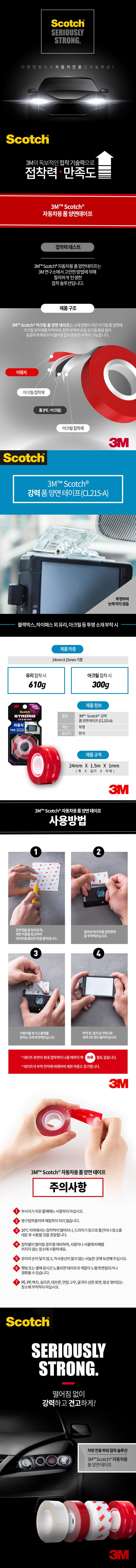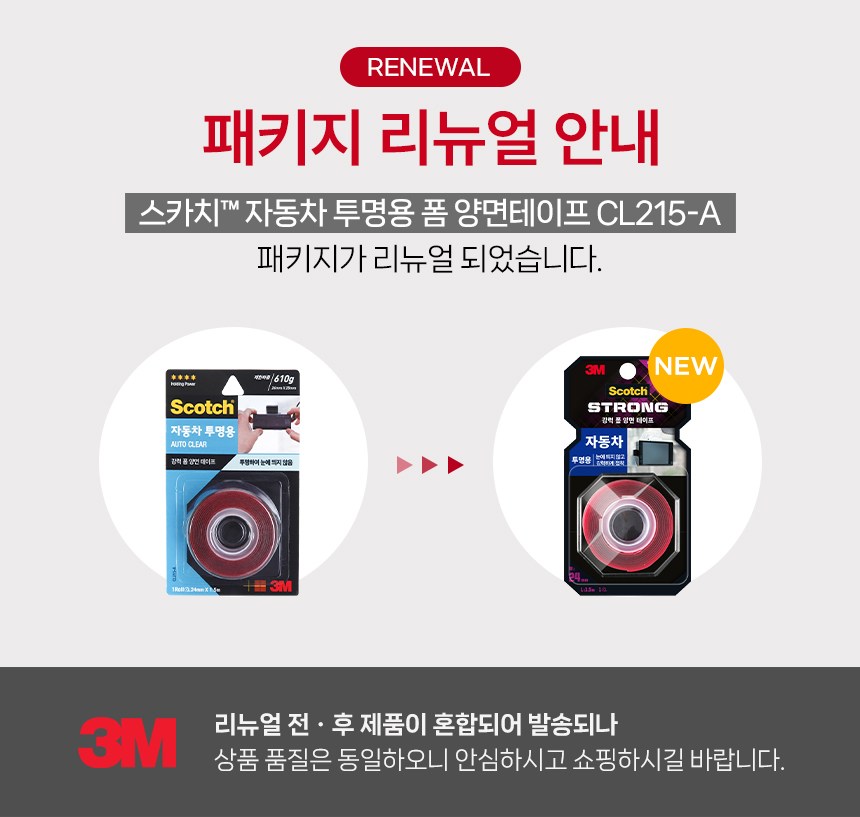 | 품명 및 모델명 | 3M 스카치 자동차용 투명 폼 양면 테이프 24mm x 1.5m | 인증/허가 사항 | 해당없음 |