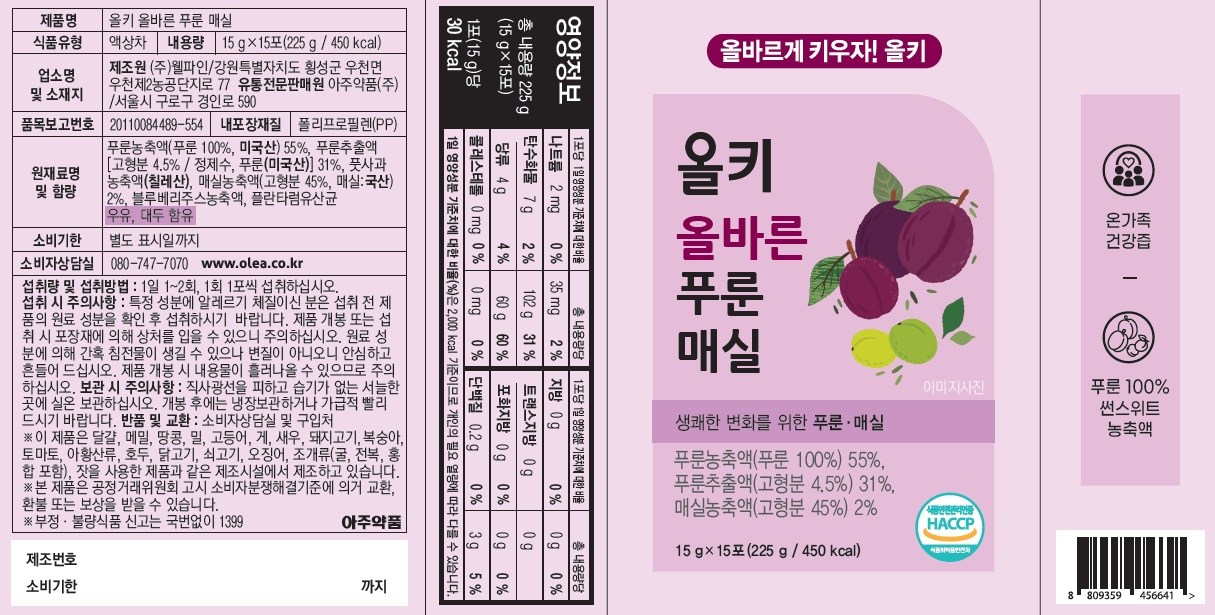 | 포장단위별 내용물의 용량(중량), 수량 | 15g x 15개 | 원재료명 및 함량 | 컨텐츠 참조 |