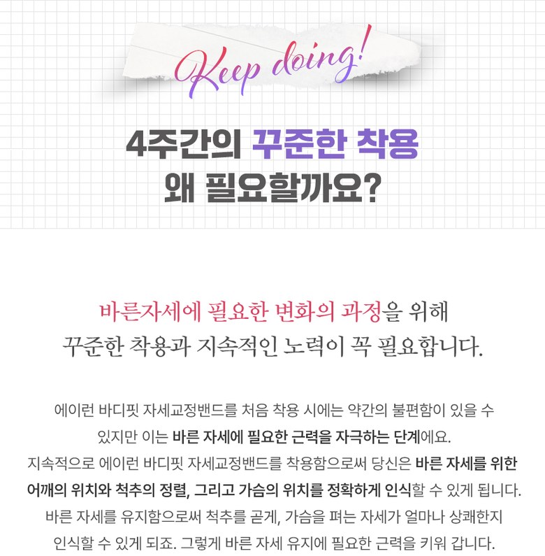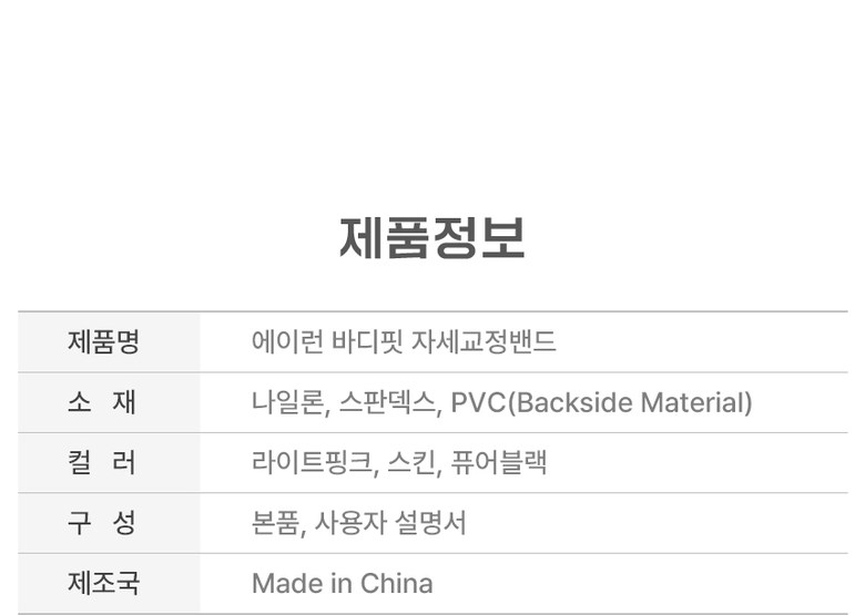 | 품명 및 모델명 | 에이런 바디핏 자세교정밴드 | KC 인증정보 | 상품 상세페이지 참조 |