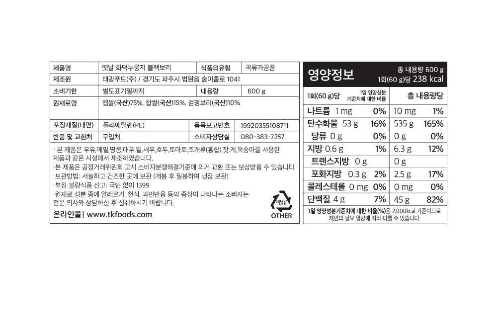 | 포장단위별 내용물의 용량(중량), 수량 | 600g x 3개,1개 | 원재료명 및 함량 | 컨텐츠 참조 |