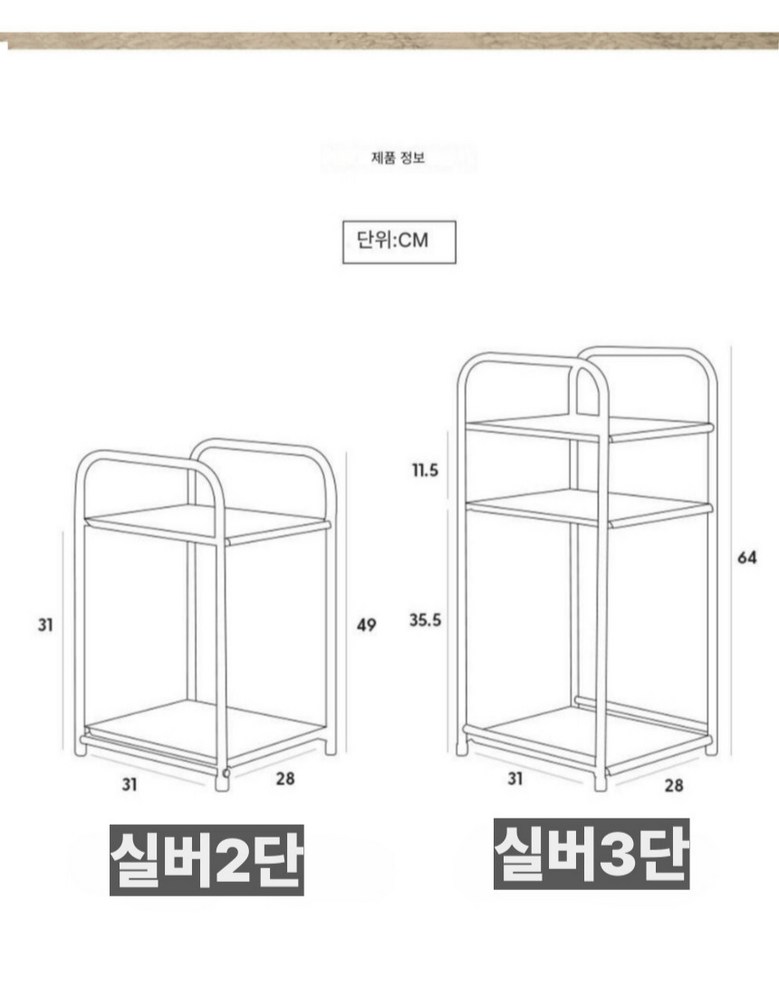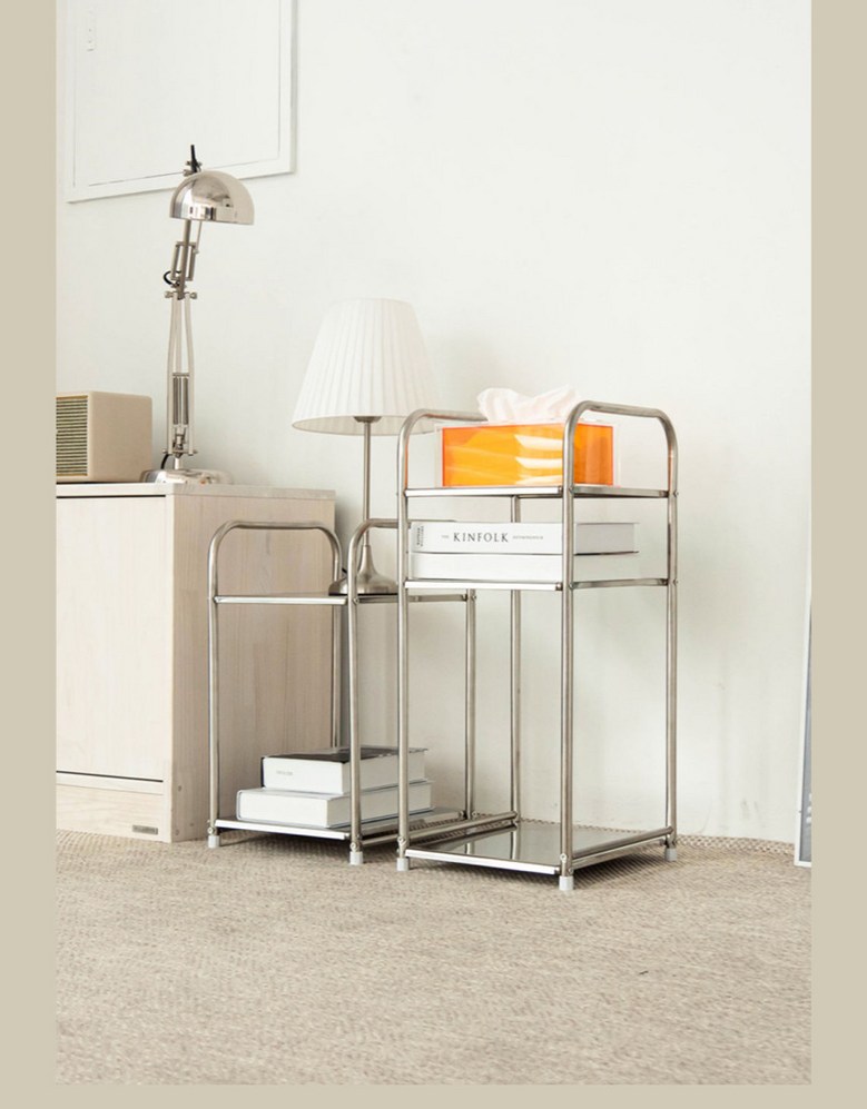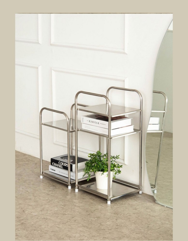 kirahosi 미니 모듈 스텐 침대 옆 협탁 사이드 테이블, 실버 3단, 1개
