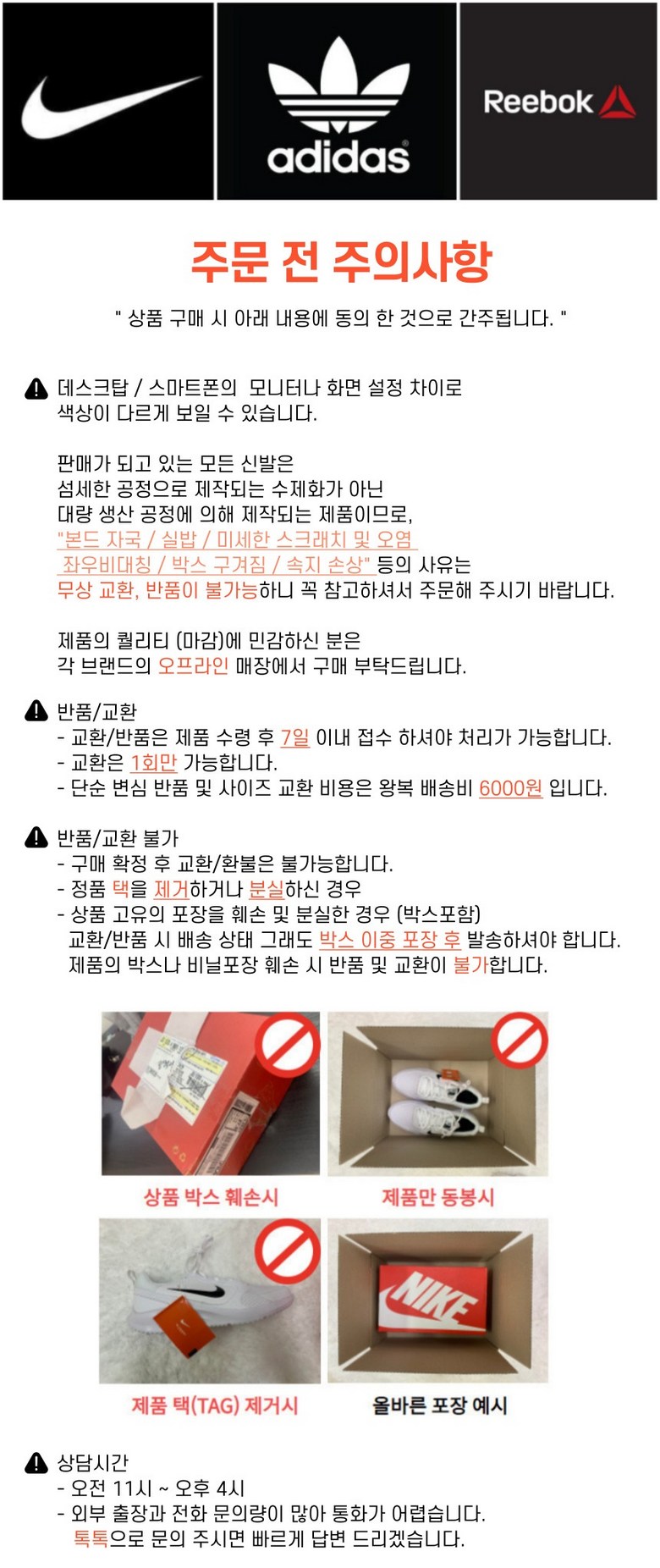 - ㆍ모니터 해상도의 차이로 인해 색상이나 이미지가 실제와 달라, 고객이 단순 변심으로 교환/반품을 무료로 요청하는 경우
