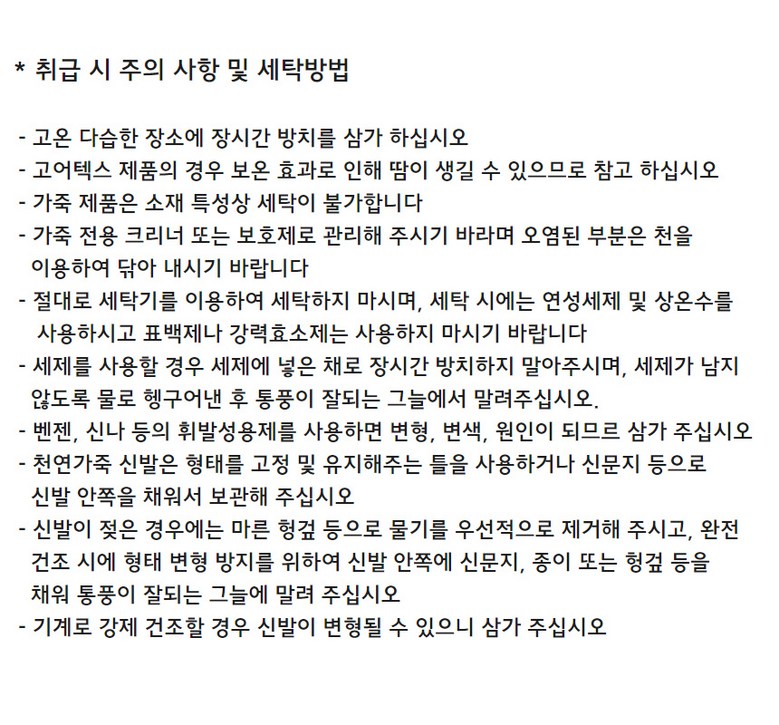 | 제조국 | 인도네시아 | 취급시 주의사항 | 상품 상세페이지 참조 |