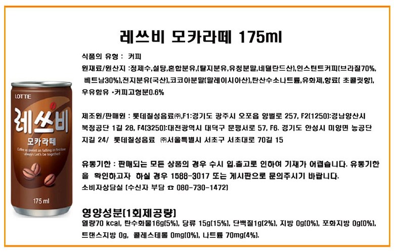 레쓰비모카175ml(10캔)