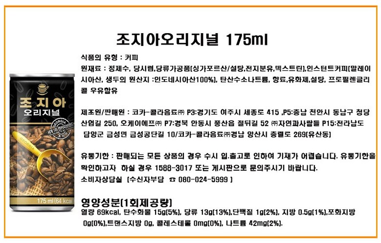 조지아오리지널175ml(10캔)