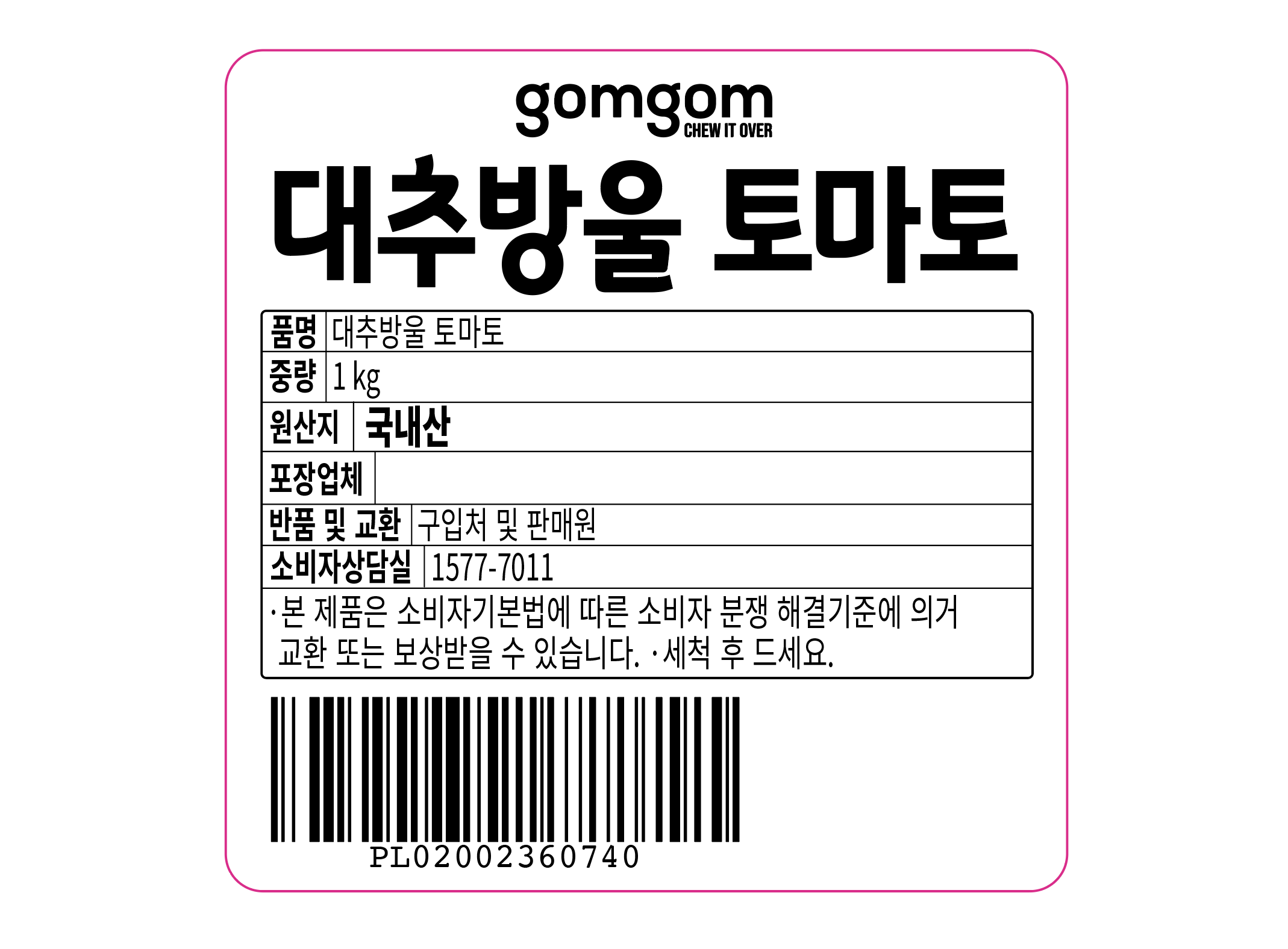 | 품목 또는 명칭 | 대추방울토마토 | 포장단위별 내용물의 용량(중량),수량,크기 | 1kg |