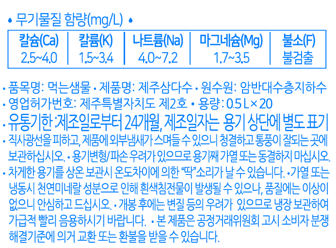 | 포장단위별 내용물의 용량(중량), 수량 | 500ml, 40개 | 원재료명 및 함량 | 컨텐츠 참조 |