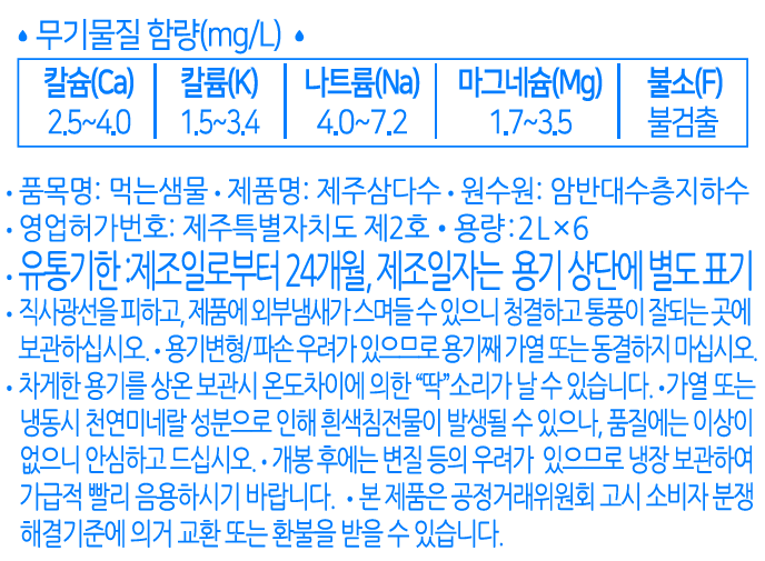 | 포장단위별 내용물의 용량(중량), 수량 | 2L, 18개 | 원재료명 및 함량 | 컨텐츠 참조 |