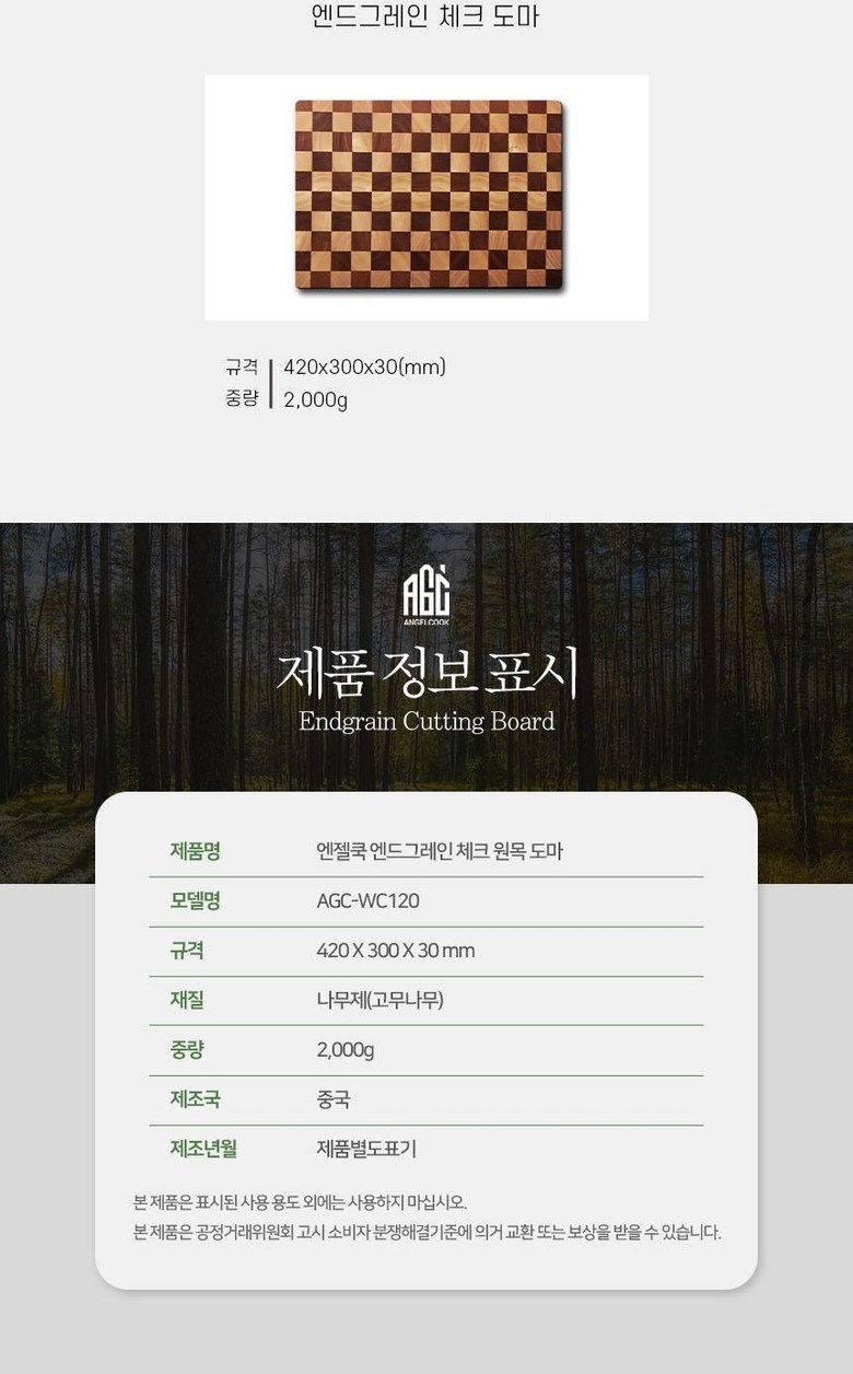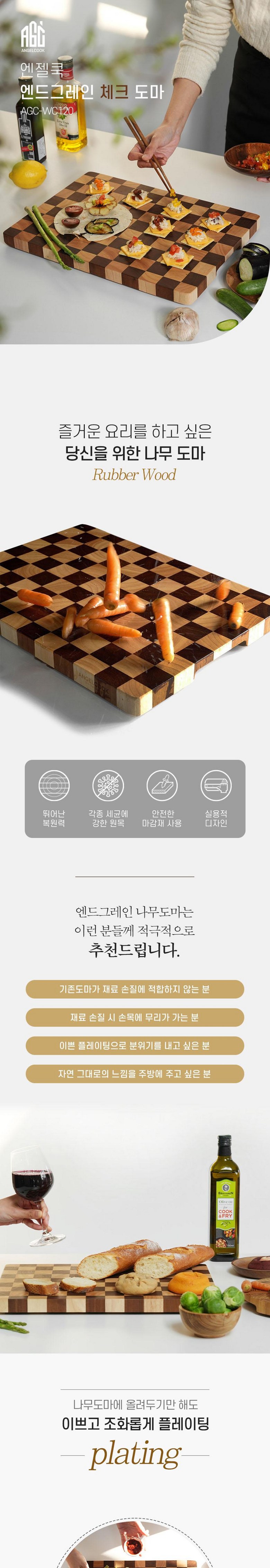 | 품명 및 모델명 | 엔젤쿡 엔드그레인 체크 도마 AGC-WC120 | 재질 | 나무제(고무나무) |